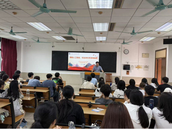 许永以“拥抱人工智能,与生命科学激情碰撞”为主题,回顾了从人类基因组计划到生命算法的发展历程。他阐释了AI驱动下生命科学研究范式的深刻变革,结合生物制药、生物科学、海洋药学、生物技术、生物工程五大专业方向,系统介绍了AI在药物研发、基因分析、海洋资源挖掘、合成生物学等领域的创新应用,并指出了行业发展的新趋势。他勉励同学们厚植学术根基,主动跨界融合,掌握核心技能,将个人发展融入健康中国和健康湾区建设大局。他希望同学们传承赵承嘏等科学家爱国奉献、求实探索的精神,践行“功成不必在我、功成必定有我”的担当,以实干投身科研一线,在时代浪潮中书写新的篇章。